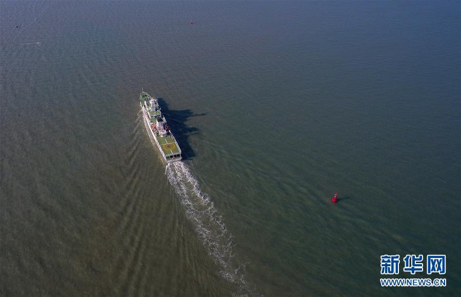 11月3日,“海巡21”輪駛出港口(無人機拍攝)。 當(dāng)日,隨著“海巡21”輪緩緩駛離海口海事監(jiān)管基地碼頭,由瓊桂粵海事部門共同開展的瓊州海峽、北部灣及環(huán)海南島水域跨轄區(qū)聯(lián)合巡航執(zhí)法活動揭開序幕。 新華社記者楊冠宇攝