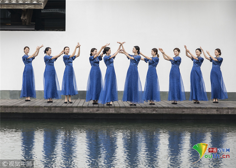 2018年11月5日,浙江嘉興,大會(huì)志愿者“小梧桐”爭(zhēng)分奪秒,在烏鎮(zhèn)展開(kāi)緊張的實(shí)戰(zhàn)培訓(xùn)。阿凡提達(dá)/視覺(jué)中國(guó)