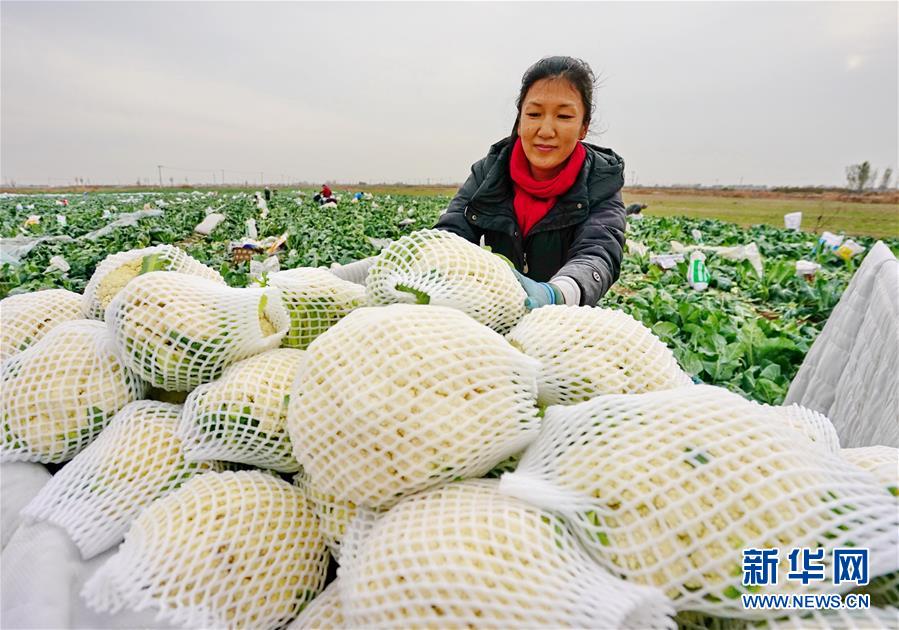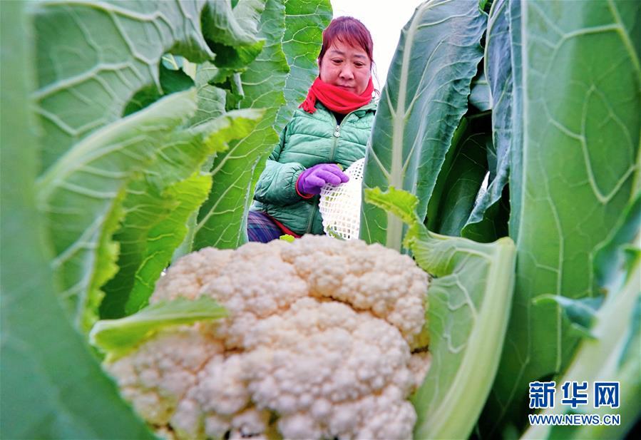 11月5日,唐山海港經(jīng)濟(jì)開(kāi)發(fā)區(qū)王灘鎮(zhèn)東高各莊村的菜農(nóng)在收獲菜花。 新華社記者 楊世堯 攝