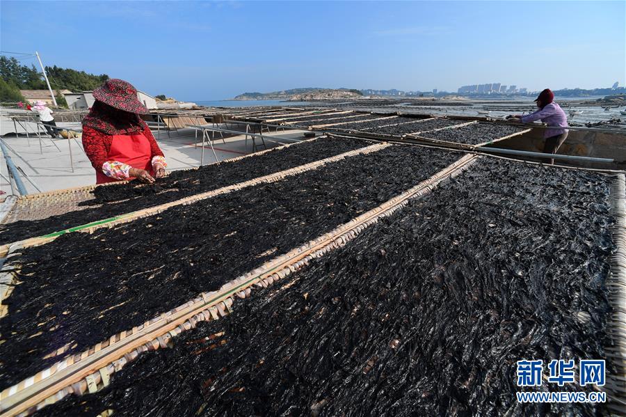10月24日,福建莆田蔣山村村民在收獲紫菜。 新華社記者姜克紅 攝
