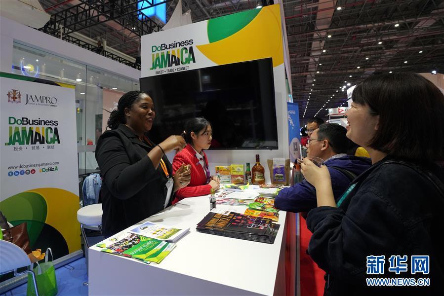 11月8日,在加勒比地區(qū)國家展區(qū)牙買加展臺,工作人員請參觀者品嘗本國特色食品。 中國國際進(jìn)口博覽會11月5日在上海開幕。國家貿(mào)易投資綜合展(國家展)是中國國際進(jìn)口博覽會的重要內(nèi)容,共有82個國家、3個國際組織設(shè)立71個展臺。 新華社記者 程麗 攝