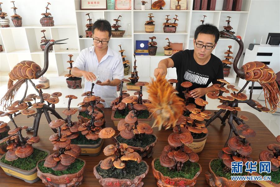 6月20日,廣宗縣大柏社村村民王志恒在展示制作的靈芝盆景。 近年來,河北省廣宗縣大柏社村積極引導(dǎo)農(nóng)民結(jié)合市場需求調(diào)整農(nóng)業(yè)產(chǎn)業(yè)結(jié)構(gòu),采取“公司+合作社+基地+農(nóng)戶”的經(jīng)營模式,發(fā)展特色靈芝種植,并開發(fā)出靈芝盆景、靈芝孢子粉等相關(guān)衍生產(chǎn)品,開辟出一條富農(nóng)創(chuàng)收新路徑。目前,大柏社村靈芝種植面積近百畝,種植各類靈芝5000余株,帶動120余名農(nóng)民就業(yè)增收。新華社記者朱旭東攝