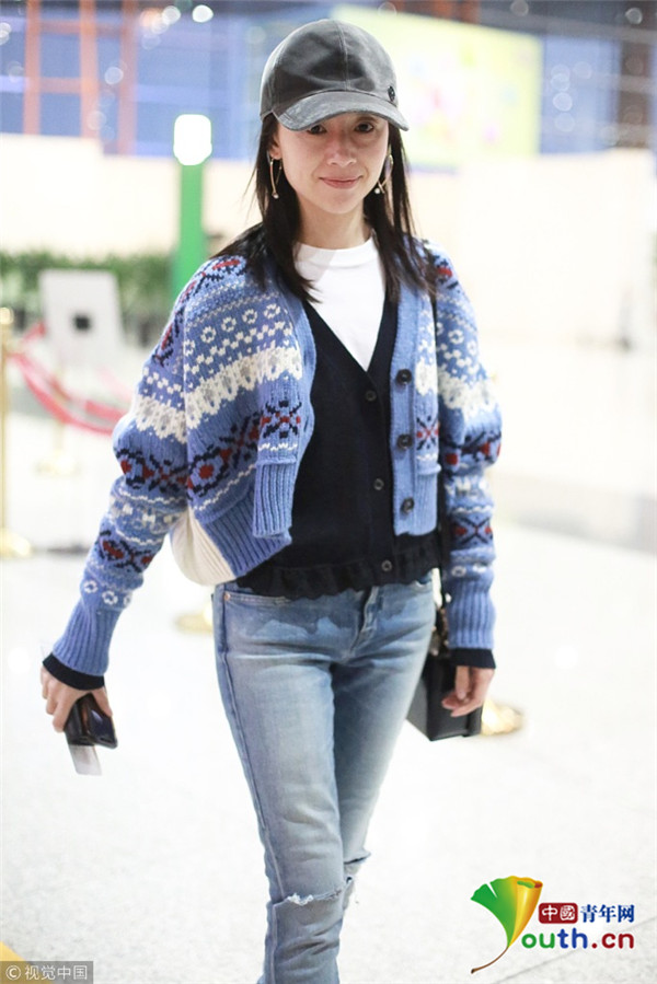 董潔素面朝天現(xiàn)機(jī)場(chǎng)