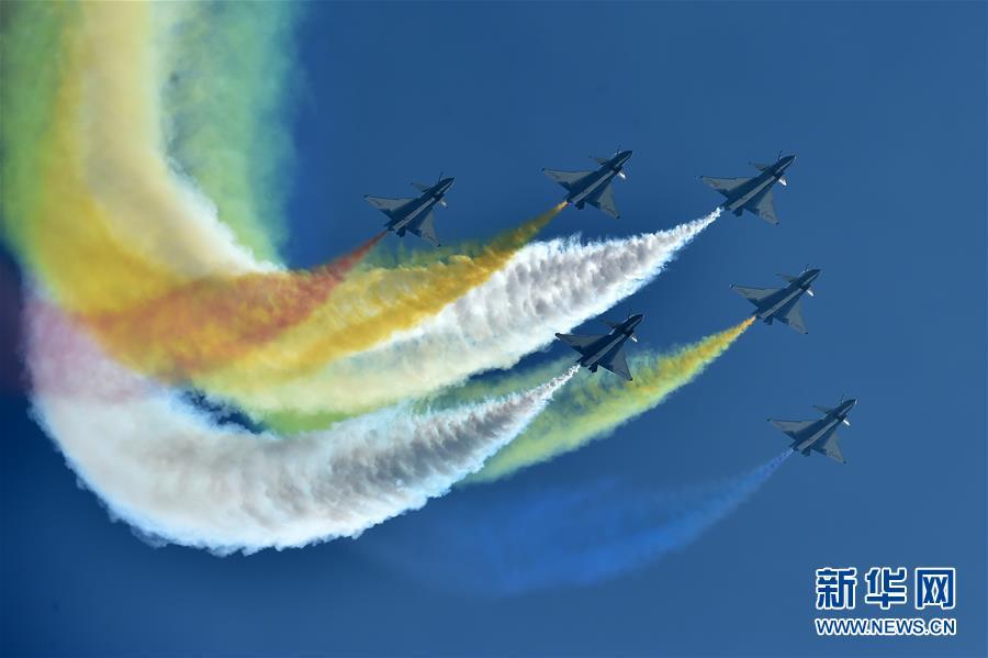 11月6日,中國空軍八一飛行表演隊在航展現(xiàn)場進行飛行表演。當(dāng)日,第十二屆中國國際航空航天博覽會在珠海開幕。新華社記者梁旭攝