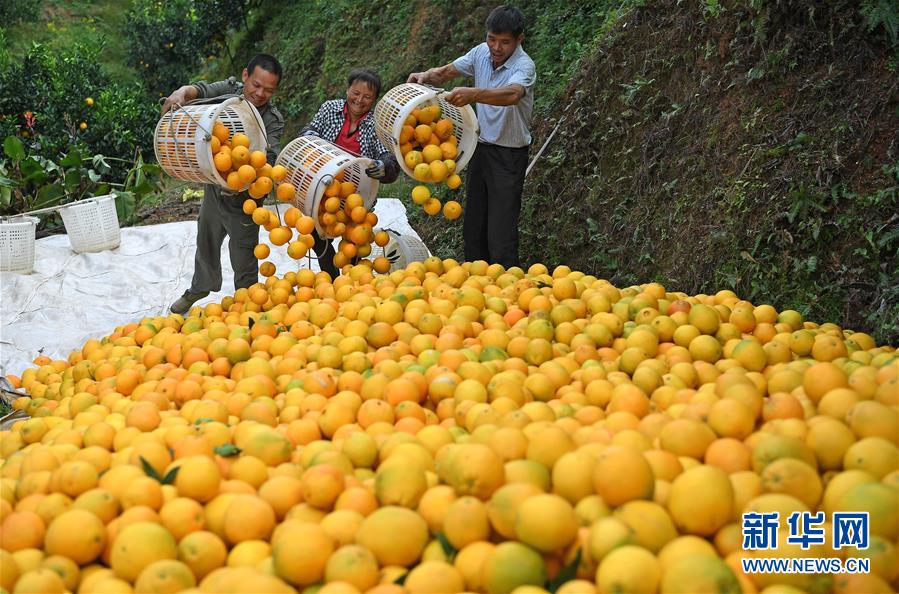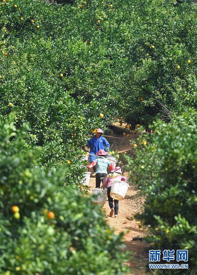 近日,江西省贛州市尋烏縣近20萬畝果園進(jìn)入豐收采摘期,當(dāng)?shù)毓r(nóng)抓住晴好天氣開始采摘臍橙,果園一派繁忙景象。新華社記者 萬象 攝