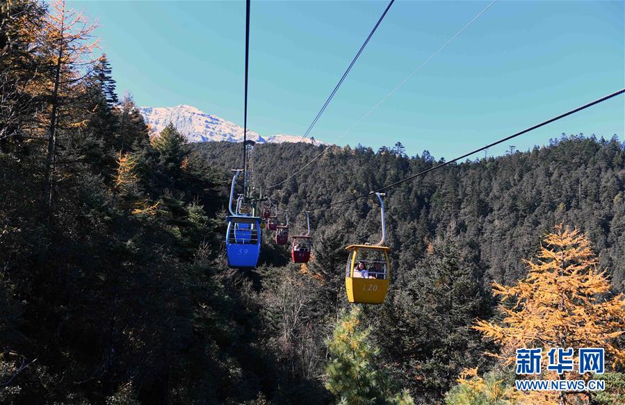 11月10日,游客乘坐纜車觀賞麗江玉龍雪山風光。 新華社記者楊宗友攝