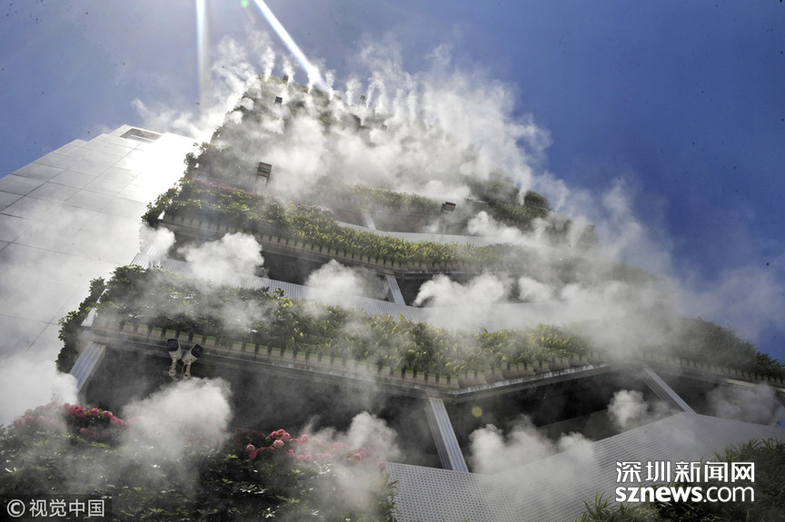 相關(guān)鏈接 10層高樓長滿綠植“仙氣飄飄” 這座建筑在抖音火了! 深圳新聞網(wǎng)訊 2018年6月10日,西安,高樓外長滿綠植,還縈繞著霧氣。這段只有6秒的短視頻在抖音火了,網(wǎng)友評(píng)論這是“第四代住房”,其實(shí)這是西安市眾創(chuàng)示范街區(qū)的一處安裝了智能霧森系統(tǒng)的西北最大戶外垂直綠化。 夏天能區(qū)域降溫5℃至10℃ 還可有效抑制PM10 “仙氣飄飄”、“西安天氣有多熱,房子都冒煙了”,這是一段抖音小視頻里網(wǎng)友的評(píng)論留言。視頻中一棟10層高的樓外側(cè)樓梯處掛滿了綠植,同時(shí)綠植上方還有噴霧。藍(lán)藍(lán)的天空當(dāng)做背景,引來不少人上前拍照,配著背景音樂的確讓人感覺清涼無比。