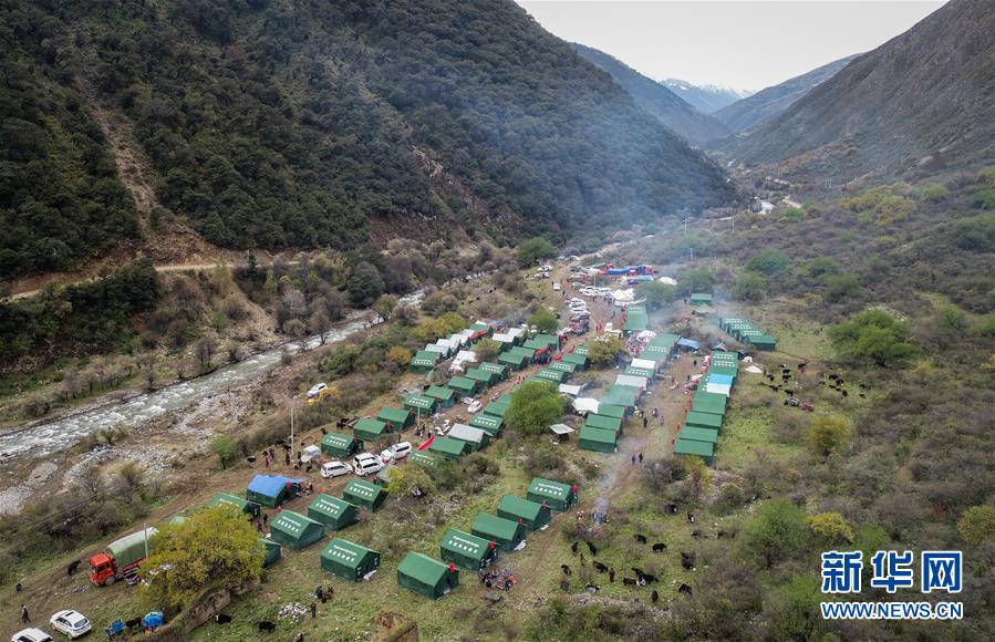 10月19日拍攝的在米林縣派鎮(zhèn)達林村搭建的安置點。 記者從西藏自治區(qū)林芝加拉村雅魯藏布江堰塞湖災(zāi)情應(yīng)急搶險工作第二場新聞發(fā)布會上獲悉,19日13時30分,雅魯藏布江米林縣堰塞體上游水位超過堰塞體,開始自然過流,上游水位正在緩慢下降。目前,各項搶險救援工作正在有序開展。 新華社記者 普布扎西 攝