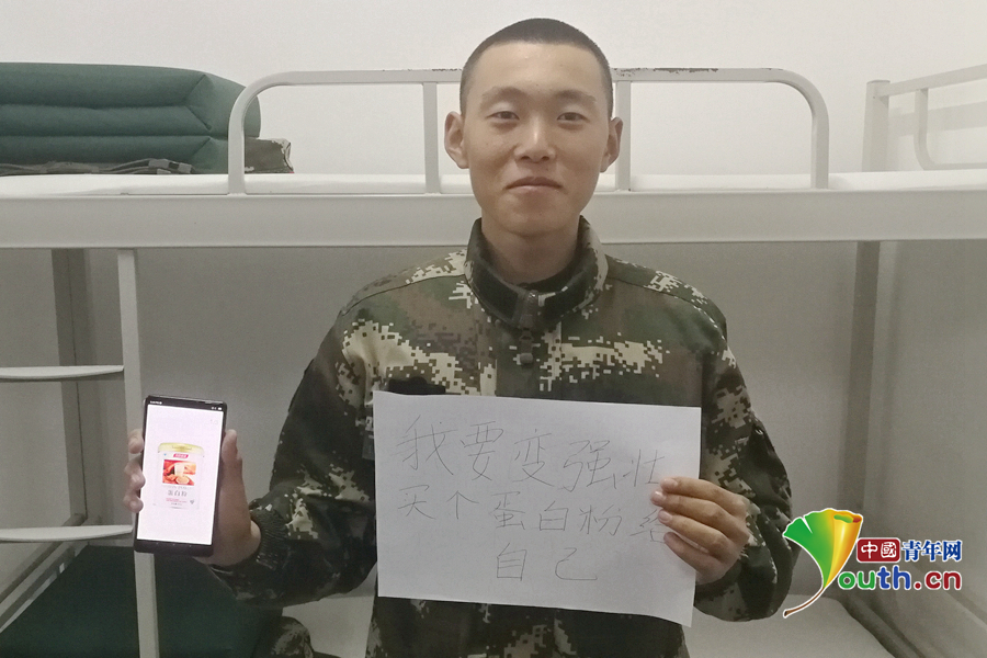 “班長(zhǎng)總說(shuō)我太瘦,買罐蛋白粉,我要快點(diǎn)變強(qiáng)壯?!蔽渚本┛傟?duì)執(zhí)勤第二支隊(duì)供圖。