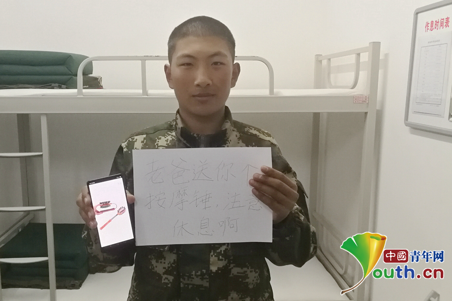 “爸爸說(shuō)最近肩膀有點(diǎn)痛,給他買個(gè)按摩錘,工作別太辛苦,要注意休息。”武警北京總隊(duì)執(zhí)勤第二支隊(duì)供圖。