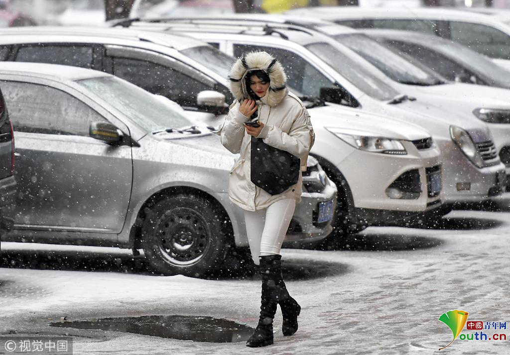 風(fēng)雪中,民眾裹緊衣領(lǐng)腳步匆匆。圖片作者:劉新