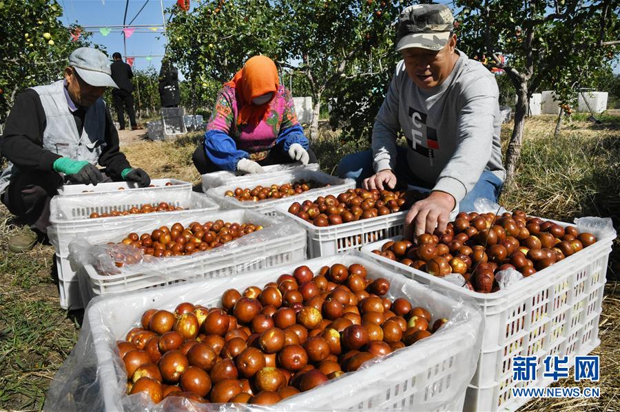 10月17日,在山東省青島市即墨區(qū)藍(lán)村鎮(zhèn)王演莊北村,種植戶在果園里收集采摘的大棗。 金秋時(shí)節(jié),農(nóng)民們忙著收獲成熟的農(nóng)作物,喜迎豐收。 新華社記者 李紫恒攝