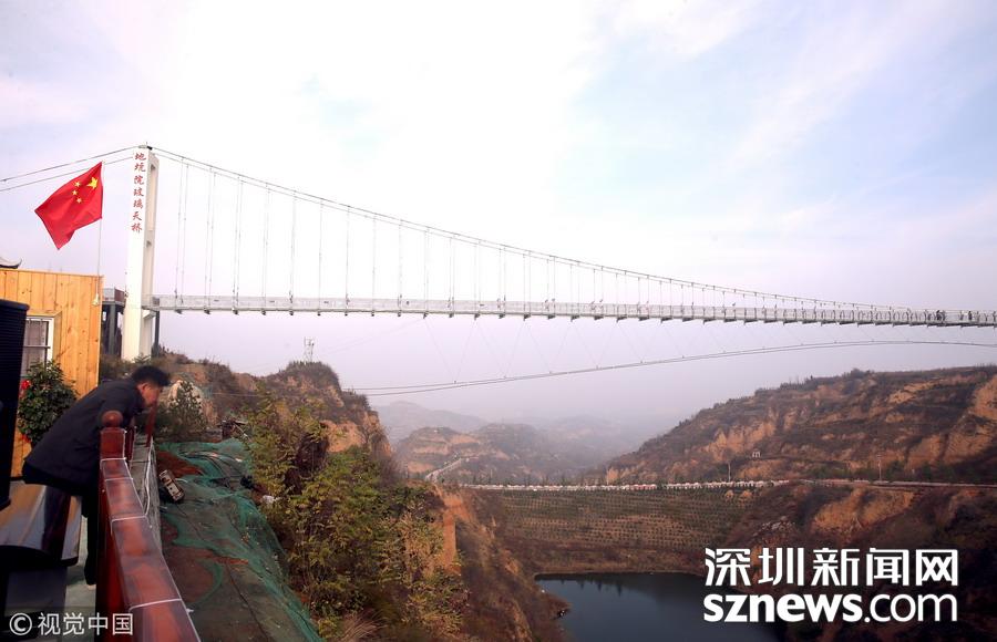 實(shí)拍地坑院景區(qū)玻璃天橋 全長318米高108米
