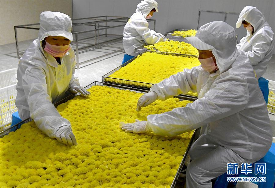 11月14日,河南省內(nèi)鄉(xiāng)縣乍曲鎮(zhèn)水溝村一家菊花茶加工企業(yè)工人在挑揀菊花。 近年來(lái),河南省內(nèi)鄉(xiāng)縣依托資源優(yōu)勢(shì),把發(fā)展特色農(nóng)業(yè)作為精準(zhǔn)扶貧的重要舉措,采取“公司+合作社+農(nóng)戶(hù)”的方式,招引農(nóng)業(yè)龍頭企業(yè)發(fā)展菊花種植產(chǎn)業(yè),把菊花加工成茶飲、藥材等高附加值產(chǎn)品,累計(jì)帶動(dòng)150余戶(hù)貧困戶(hù)就業(yè)增收。 新華社記者 李安 攝