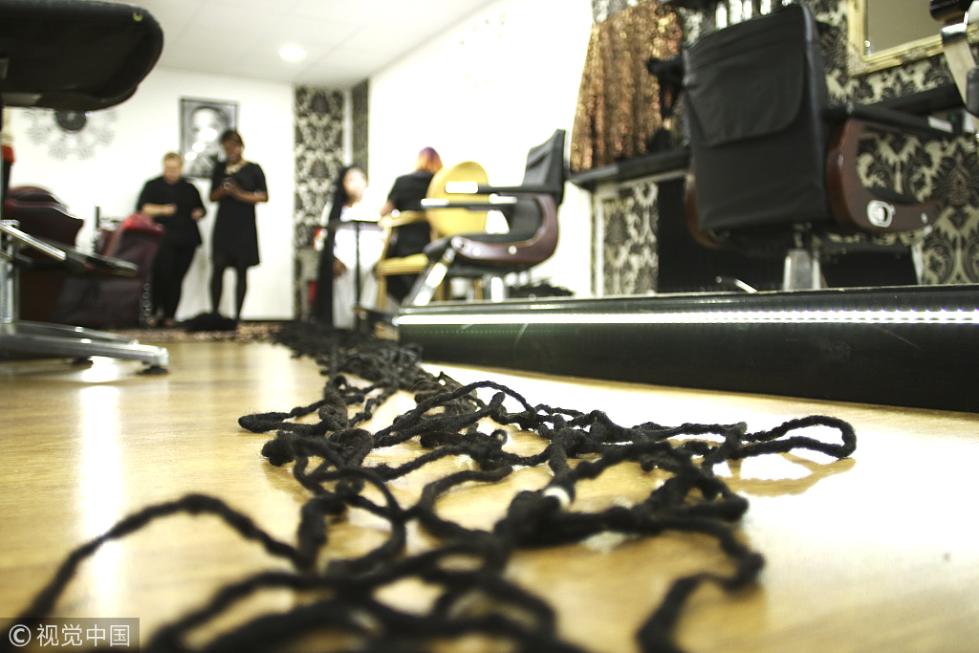 當?shù)貢r間2018年9月14日,英國韋靈伯勒,正在英國旅行的Asha Mandela來自美國佛羅里達州,是世界上頭發(fā)最長的女人。她的頭發(fā)現(xiàn)在長約34米(110英尺),超過三輛雙層巴士的長度。Asha Mandela十年前打破了世界吉尼斯頭發(fā)最長的紀錄。