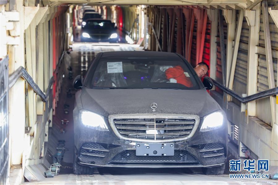 當(dāng)日,首趟中歐班列商品車專用車運(yùn)輸國(guó)際班列搭載的112臺(tái)奔馳品牌進(jìn)口整車在重慶順利完成通關(guān)。