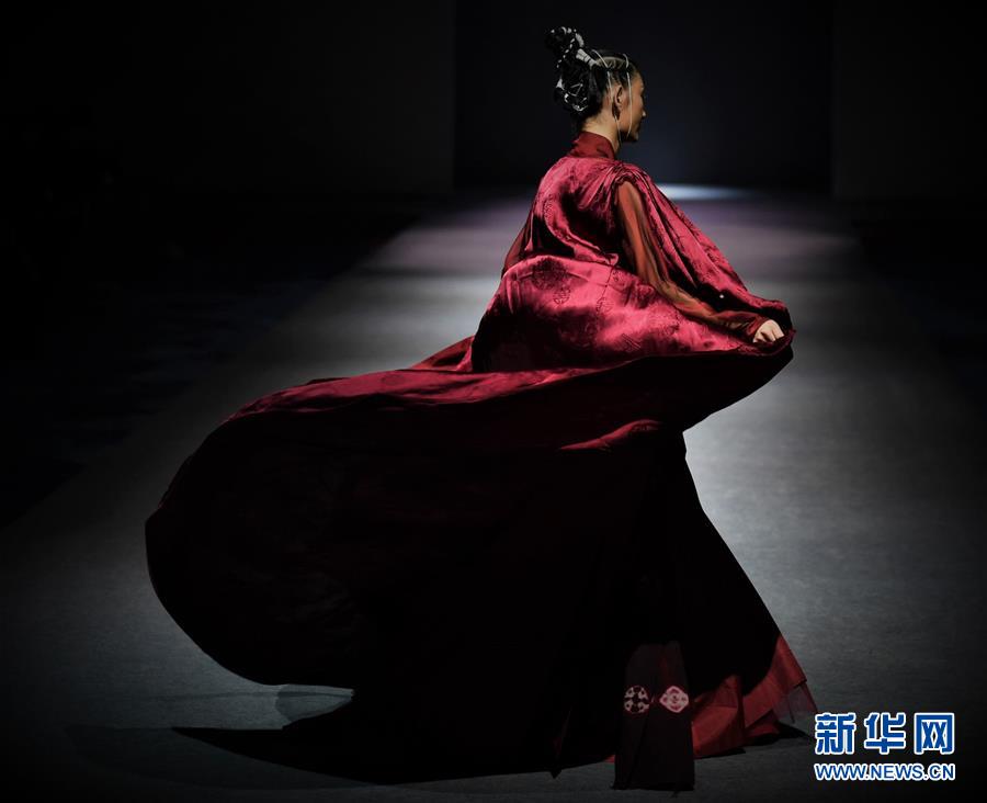 模特在AJ-NAMO藏裝秀上展示藏族設(shè)計師阿佳娜姆設(shè)計的時裝(11月18日攝)。 新華社記者 普布扎西攝