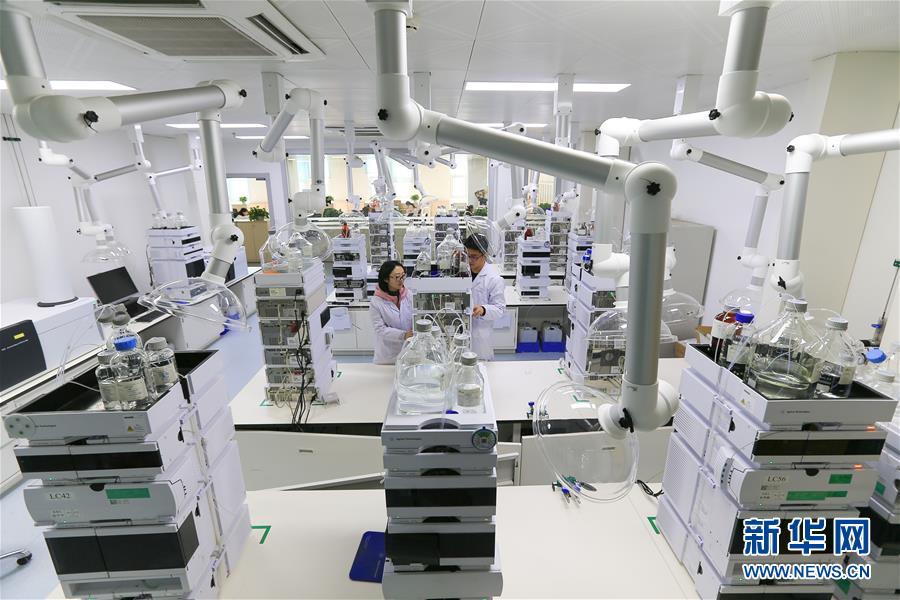 在綠葉制藥集團(tuán)的研發(fā)中心,實(shí)驗(yàn)人員進(jìn)行樣品分析(11月15日攝)。新華社記者王南攝