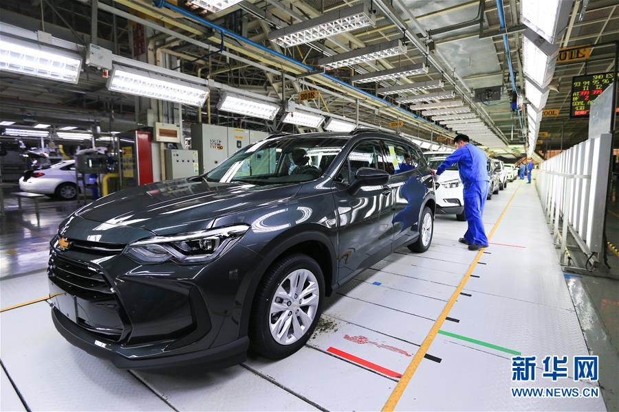 在上汽通用東岳汽車有限公司的總裝車間,工作人員在裝配流水線上作業(yè)(11月15日攝)。新華社記者王南攝