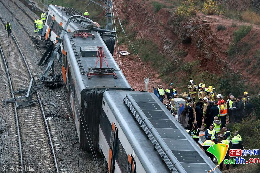 西班牙巴塞羅那一列火車發(fā)生脫軌事故