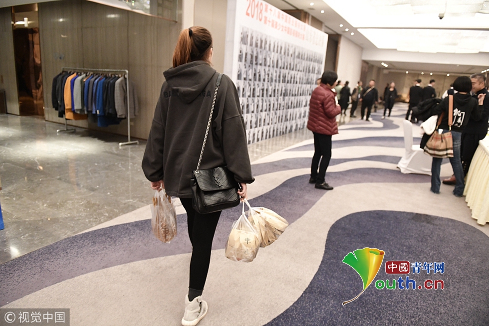 2018年11月20日,山東日照,一位培訓機構(gòu)老師買來不少外賣,她介紹,這是給學生路上吃的,活動結(jié)束他們就會立即趕往下一個目的地,參加另一個比賽。圖片作者:視覺中國