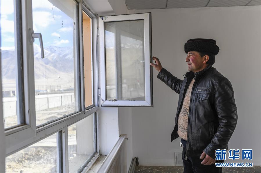 在塔什庫(kù)爾干塔吉克自治縣塔提庫(kù)力易地扶貧搬遷安置點(diǎn),都熱·加爾曼打開(kāi)新房的窗戶(11月18日攝)。新華社記者胡虎虎攝
