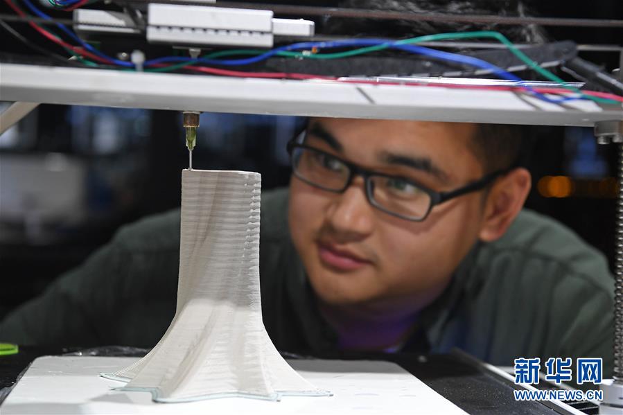 在江西景德鎮(zhèn)陶溪川文創(chuàng)街區(qū),一位工作人員正在用3D打印技術(shù)制作陶瓷花瓶(2017年4月8日攝)。 新華社記者 萬(wàn)象 攝
