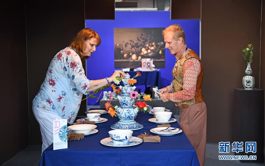在中國(guó)景德鎮(zhèn)國(guó)際陶瓷博覽會(huì)的現(xiàn)場(chǎng),來自荷蘭的參展商正在布置展臺(tái)(10月18日攝)。 新華社記者 萬(wàn)象 攝