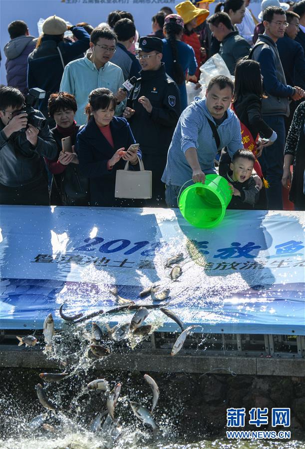 當(dāng)日,“2018放魚滇池暨滇池土著魚類放流生態(tài)保護(hù)行動(dòng)”在昆明滇池湖畔舉行,包括20萬尾滇池金線鲃、云南光唇魚在內(nèi)的滇池土著魚類以及5萬余尾鰱、鳙魚在滇池放流。 據(jù)統(tǒng)計(jì),滇池最多的時(shí)候生活著24種土著魚,目前除了銀白魚自然存在外,2010年實(shí)現(xiàn)了滇池金線鲃的人工增殖放流,2017年又讓云南光唇魚實(shí)現(xiàn)了回歸。 新華社記者江文耀攝