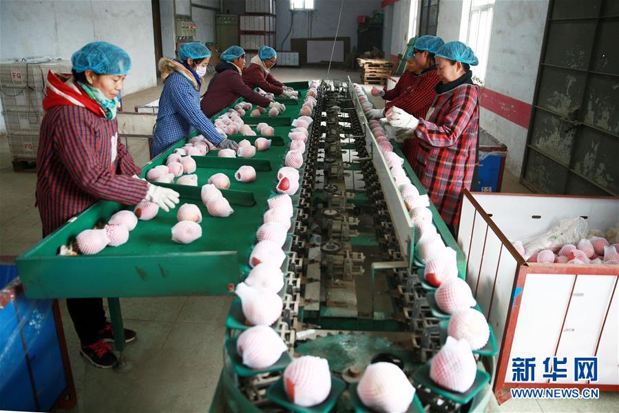 11月26日,河北省內丘縣一扶貧龍頭企業(yè)的員工在分揀蘋果。 近年來,河北省內丘縣不斷推進產業(yè)扶貧,探索“龍頭企業(yè)+貧困戶”利益鏈接機制,通過扶貧資金入股、進廠打工等方式,提高貧困戶的產業(yè)參與度和受益度,帶動1300余戶貧困戶實現增收。 新華社記者 牟宇 攝