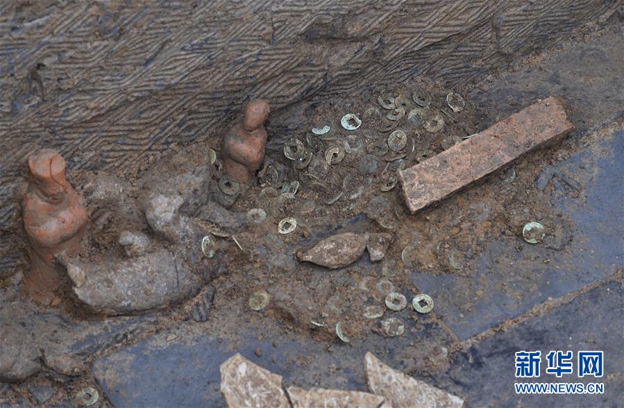 這是發(fā)掘的隨葬品(11月15日攝)。