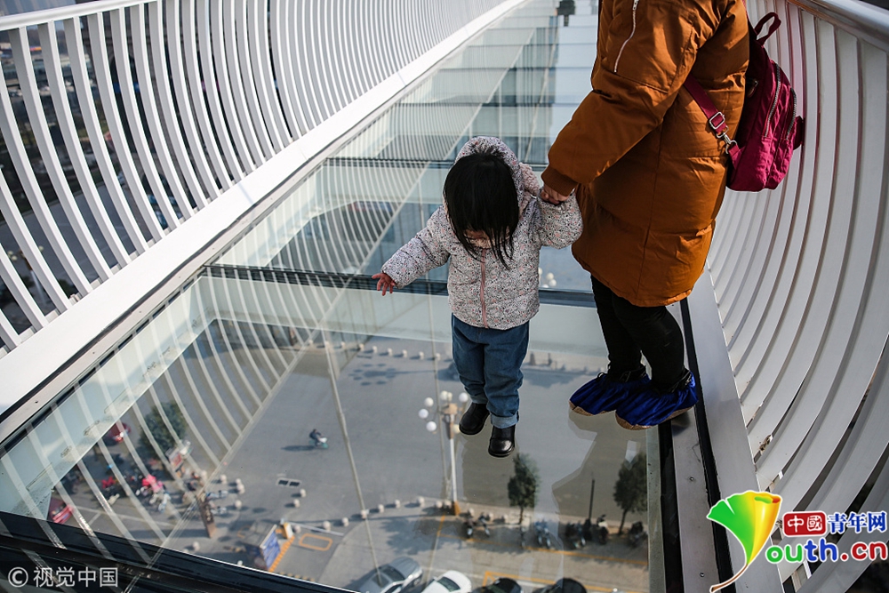 初生牛犢不怕虎,不少兒童走在玻璃吊橋上若無其事,大步流星地往前走,而其身后的家長則是緊貼著一側(cè)的欄桿,雙手緊握扶手挪步前行,雙眼一直不敢往下看。全程走下了,游客的手掌布滿了冷汗。