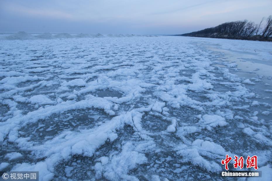 11月24日下午,攝影師在進(jìn)入冬季黑龍江東南部中俄界湖興凱湖看到,浩瀚千里的湖面不再波濤洶涌,小興凱湖蔚藍(lán)猶如平鏡,大興凱湖銀白無(wú)限。走到冰封的湖面近處觀看,封凍的大湖湖面猶如浪花被凝固,千姿百態(tài)。據(jù)岸邊漁民介紹,今年大湖屬于“武封”,是由于氣溫突然下降造成的,這也是少有的現(xiàn)象,和往年的“文封”形成的大冰塊區(qū)別很大。孫長(zhǎng)山 攝 圖片來(lái)源:視覺(jué)中國(guó)