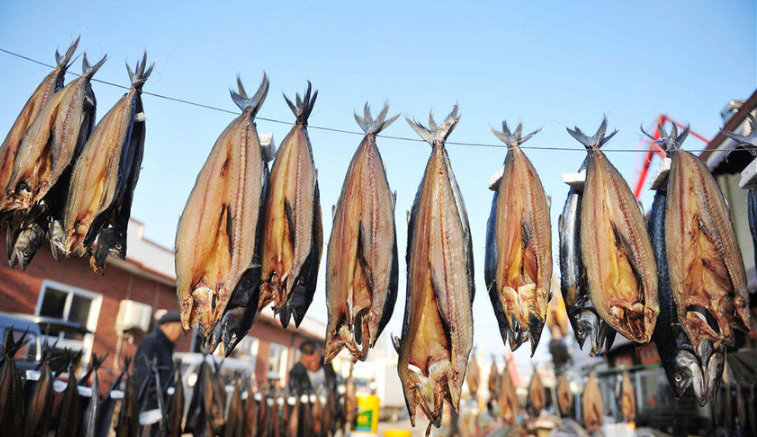 青島:初冬時節(jié)晾曬魚干成一景