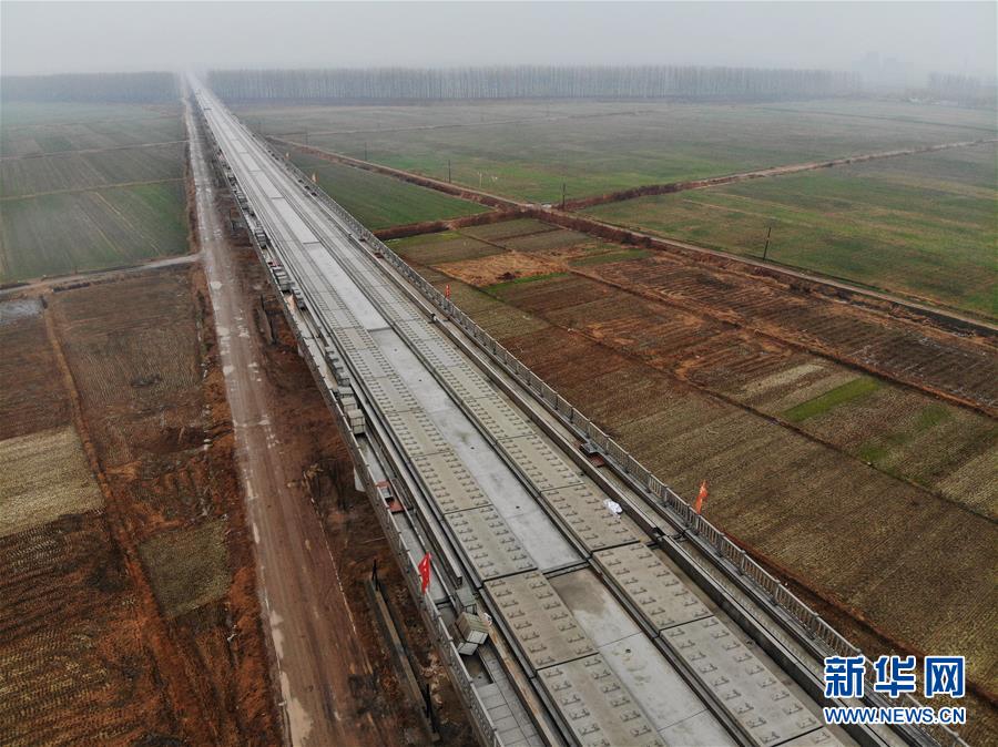 12月2日拍攝的魯南高鐵山東臨沂段(無人機拍攝)。