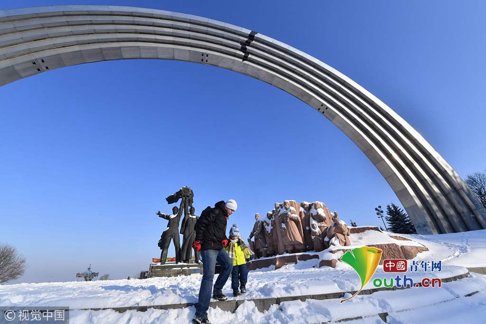 蘇聯(lián)時期象征著烏克蘭和俄羅斯友誼拱形建筑被不知名藝術(shù)家添加了一道裂縫