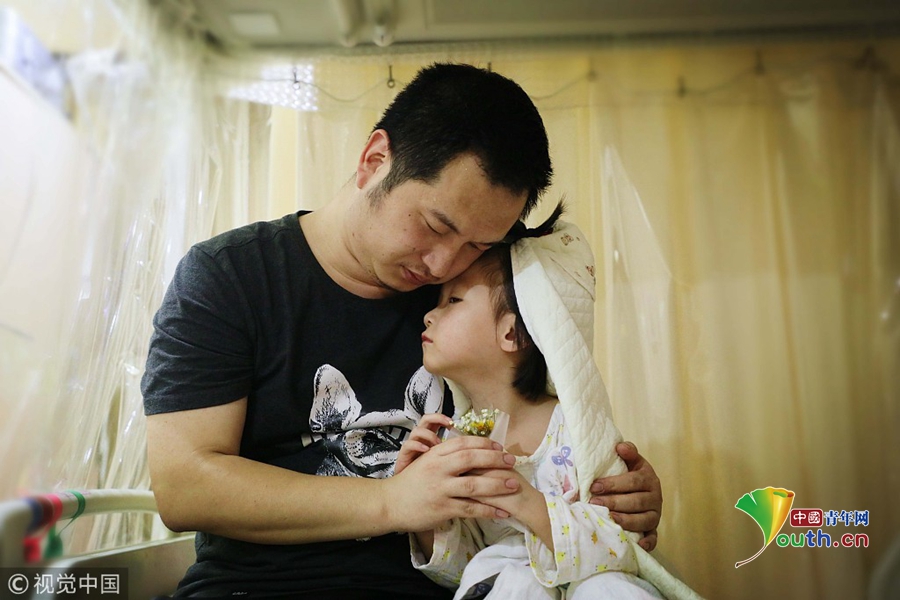中國(guó)青年網(wǎng)北京12月3日電2018年11月17日,在北京博仁醫(yī)院病房?jī)?nèi),4歲的小婭馨披著一條象征著婚紗的毯子坐在床上,爸爸袁東方雙手捧著一束小小的假鮮花單膝跪地向女兒“求婚”,隨后,父女倆緊緊地?fù)肀г谝黄?,顯得既幸福又傷感。旁邊的小婭馨媽媽抹著眼淚抽泣著說(shuō)“我女兒未必明白結(jié)婚寓意著什么,但她真的好想健康地活著!她是那么天真無(wú)邪,又那么懂事可愛(ài),我們真舍不得丟下她不管,祈求社會(huì)上的好心人幫幫我們,救救我心愛(ài)的女兒吧!”。