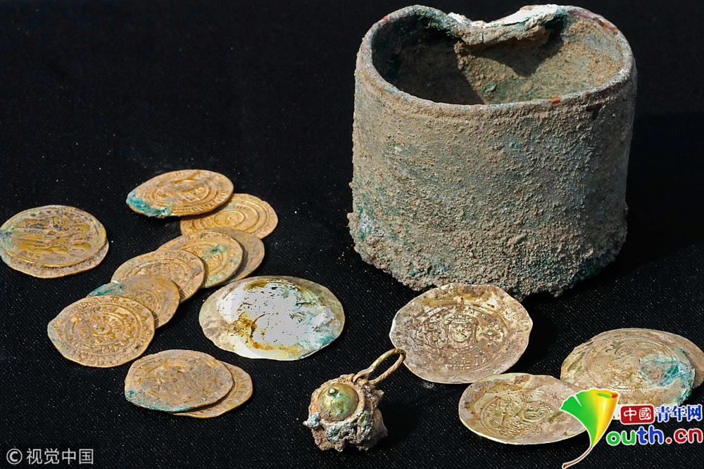 當(dāng)?shù)貢r(shí)間2018年12月3日,以色列凱撒利亞,以色列地中海小鎮(zhèn)凱撒利亞發(fā)掘出24枚古代稀有金幣。