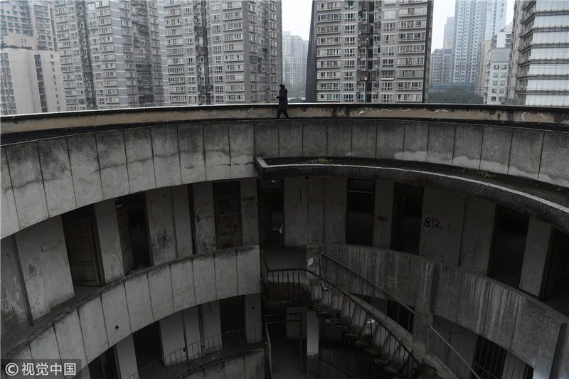 魔幻重慶再添新景觀 公交車穿8層空心圓筒樓