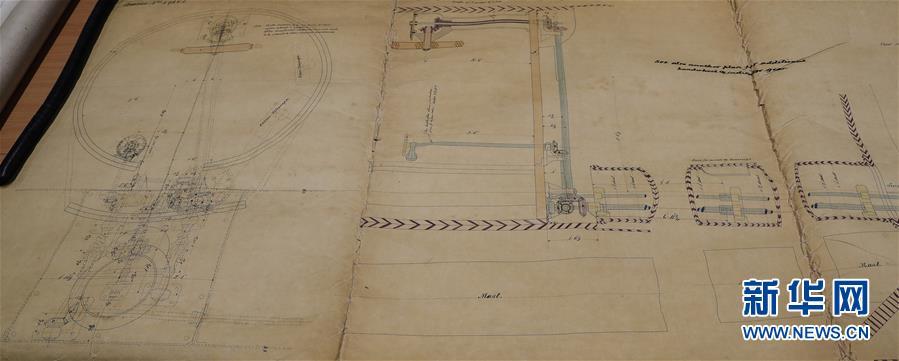 這是11月2日,在英國紐卡斯?fàn)柵臄z的橫跨在泰恩河上的紅白兩色的鋼鐵旋轉(zhuǎn)橋泰恩橋。當(dāng)年,致遠(yuǎn)艦就是從這里駛向大海,開啟東方征程。 新華社記者日前在紐卡斯?fàn)柼┒鳌枡n案館查找北洋海軍史料時發(fā)現(xiàn)一套七張、檔案名為“中國巡洋艦舵機(jī)設(shè)計(jì)圖”的原始圖紙。塵封百年,甲午海戰(zhàn)中抗擊日艦后沉沒的清北洋海軍致遠(yuǎn)艦部分原廠設(shè)計(jì)圖紙?jiān)谄浣ㄔ斓亍~卡斯?fàn)柺械囊患覚n案館首次被發(fā)現(xiàn),為打撈那段悲壯的歷史提供了重要參考。 新華社記者 韓巖 攝