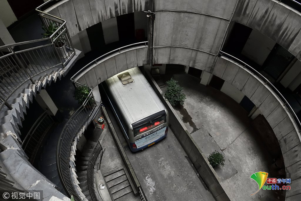 探秘重慶魔幻八層圓筒型轉(zhuǎn)轉(zhuǎn)樓 公交車穿其而過(guò)