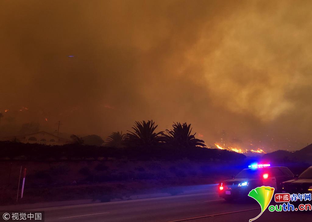 山火迅速蔓延至剛剛發(fā)生槍擊案的千橡樹市,并在9日翻過圣莫妮卡山,在強(qiáng)風(fēng)的助力下向海邊蔓延。