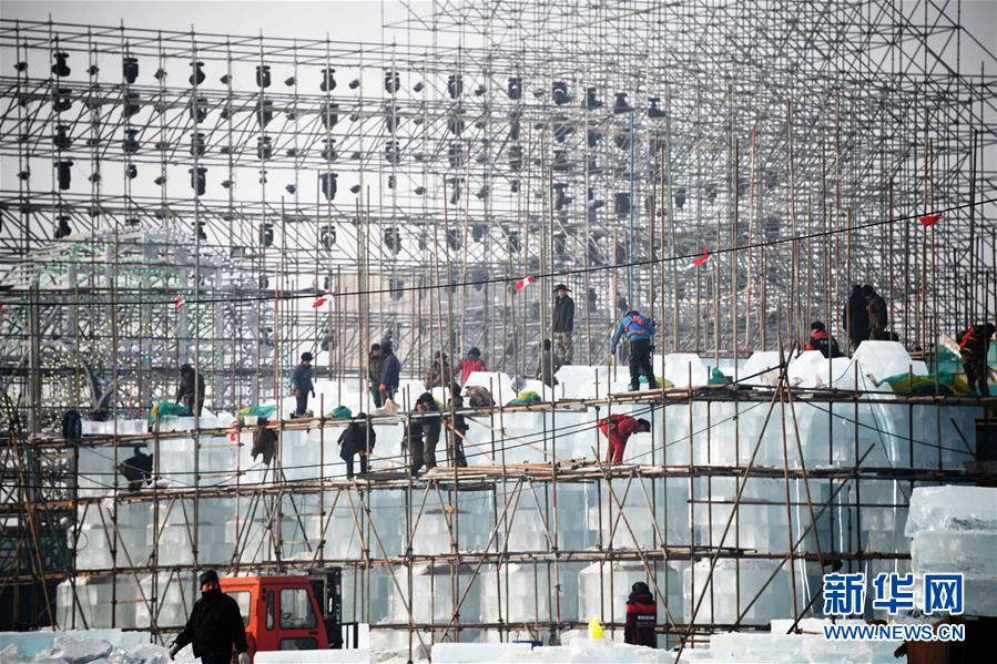 目前,以“筑夢冰天雪地,共享金山銀山”為主題的第二十屆哈爾濱冰雪大世界正在施工,現(xiàn)場一片繁忙景象。 新華社記者 王建威 攝