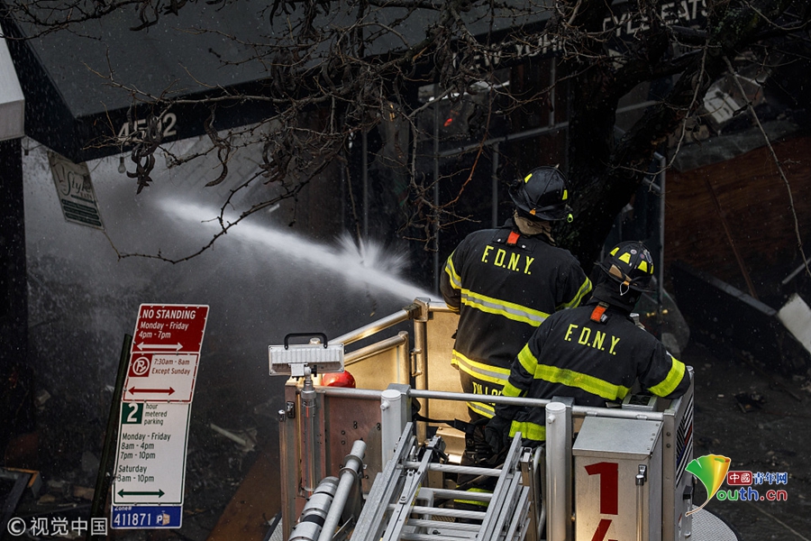 美國紐約發(fā)生大火吞噬六家商鋪 消防員撲滅火災(zāi)余燼