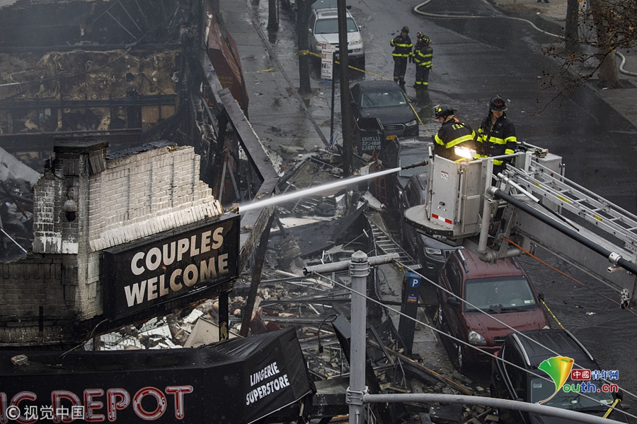 美國(guó)紐約發(fā)生大火吞噬六家商鋪 消防員撲滅火災(zāi)余燼