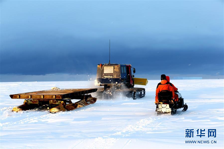 修路小組成員用雪地車裝備的鏟斗推平積雪(12月1日攝)。 搭載中國第35次南極科考隊(duì)的“雪龍”號(hào)極地考察船日前到達(dá)距離中山站44公里處的陸緣冰區(qū),準(zhǔn)備迎來本次南極科考首場攻堅(jiān)戰(zhàn)——物資卸運(yùn)。一支探冰小組隨即展開海冰探路,以期盡快打通從“雪龍”號(hào)到中山站的冰上運(yùn)輸線,盡早啟動(dòng)冰上運(yùn)貨。 新華社記者 劉詩平 攝