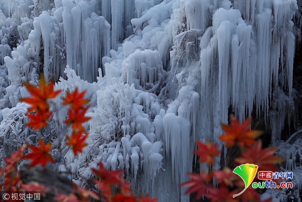12月14日,北京門頭溝區(qū)妙峰山鎮(zhèn)多處冰瀑景觀進(jìn)入最佳觀賞期。
