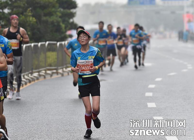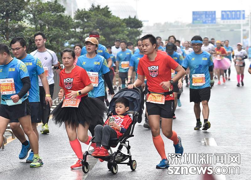 2018年12月16日,深圳國際馬拉松位于后海的折返點,一家三口都參與了本次比賽,正向目標沖刺。