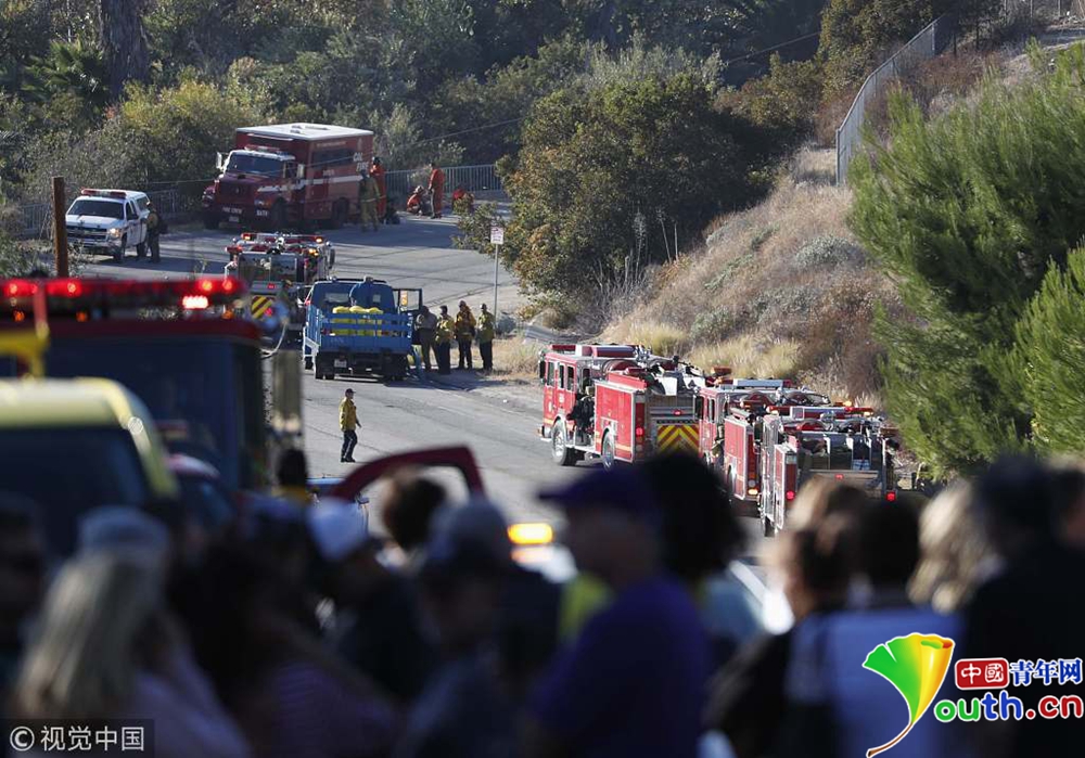 圖為文圖拉郡火場附近多輛消防車集結(jié)。