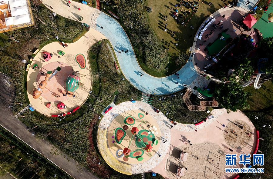 12月18日無人機(jī)拍攝的世茂精靈之城主題樂園內(nèi)的蟲蟲世界等項(xiàng)目區(qū)域。 當(dāng)日,“世茂精靈之城主題樂園奇幻親子嘉年華開幕暨上海公益基地揭牌儀式”在位于上海佘山國家旅游度假區(qū)的世茂精靈之城主題樂園一期(“深坑秘境”)正式啟動(dòng)。“深坑秘境”毗鄰上海佘山世茂洲際酒店,除了擁有俯瞰“深坑”的玻璃棧道外,還包括360度崖壁大擺錘、精靈樹屋、沙漠考古、夢幻水域和蟲蟲世界等項(xiàng)目,帶來親子游玩新體驗(yàn)。 新華社記者 方喆 攝